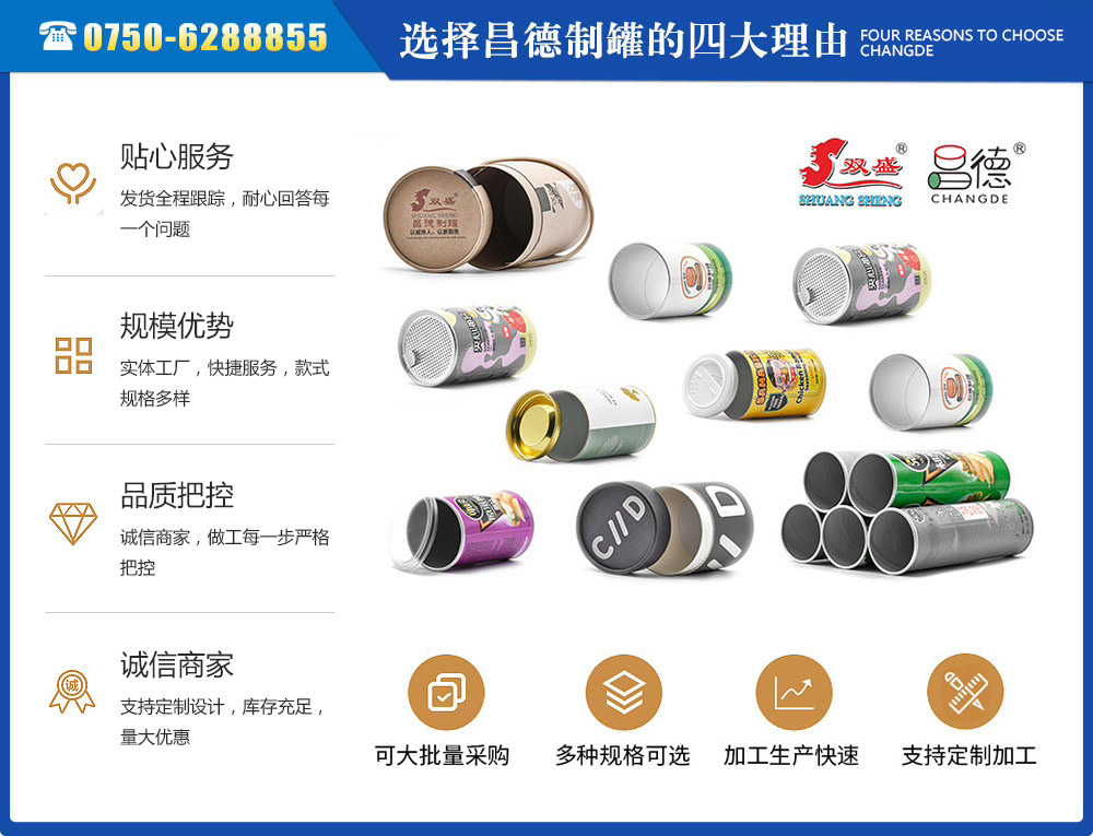 江門市昌德五金制罐有限公司位于江門與珠海臨近的古井鎮(zhèn),是專業(yè)生產紙罐,食品紙罐系列的包裝研制、開發(fā)、生產的廠家,從建廠至今,公司本著“重合同、守信用”的原則,以“質量求生存,客戶至上”為經營宗旨,贏得了很好的信譽,公司擁有國內一流的技術設備和多年的生產經驗。年產休閑食品紙筒500萬左右,紙筒2000萬支左右,易拉罐,食品罐等1000萬左右,產品銷往各地。我廠是以高科技為先導,以技術創(chuàng)新整合為手段,成為迅速崛起的專業(yè)性包裝企業(yè),憑借艱苦的創(chuàng)業(yè)精神和集體智慧,采用規(guī)范的現(xiàn)代企業(yè)運行機制,形成具有鮮明特色的企業(yè)文化模式和管理...